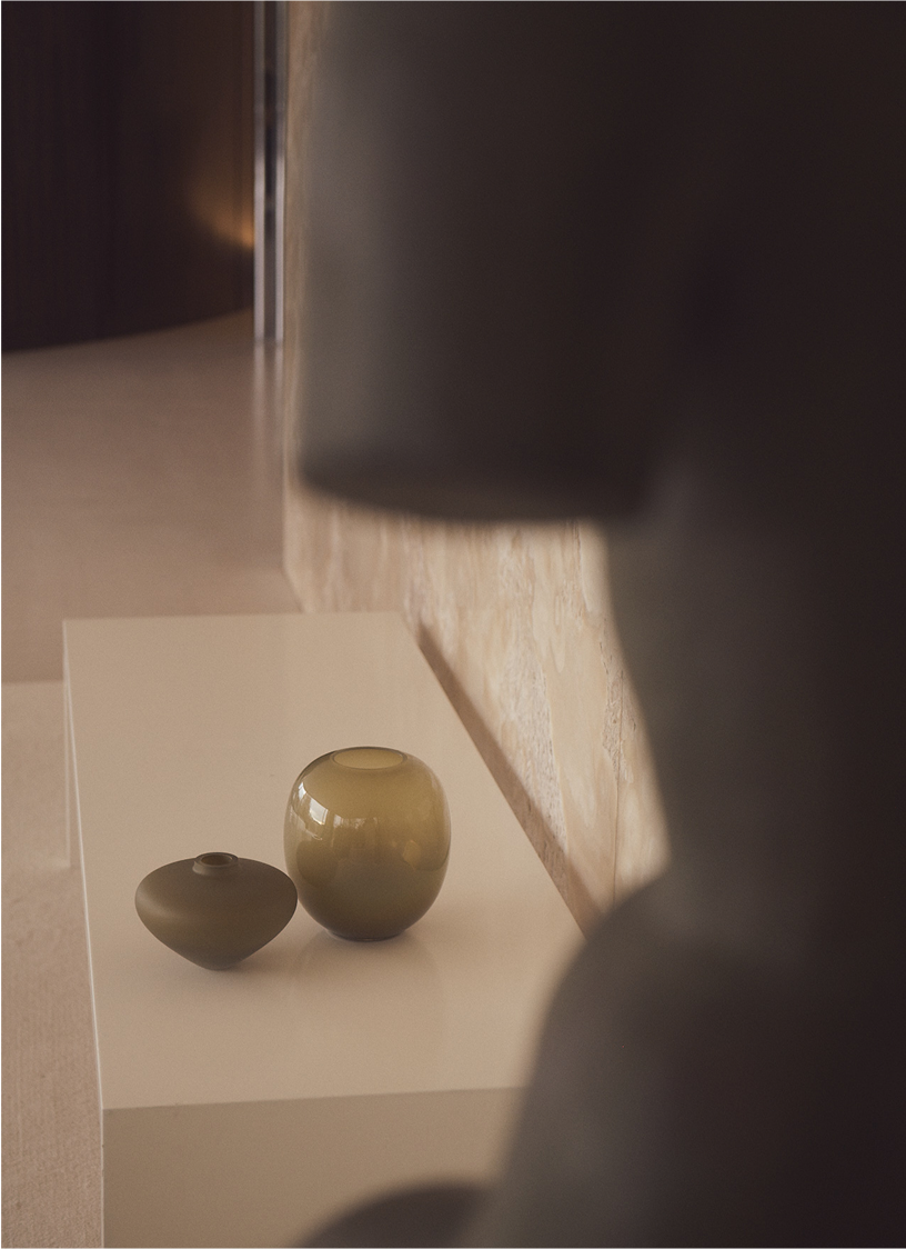 The lightness, effortless aesthetic, and exceptional craftsmanship of each glass piece elevate them to collectible objects, intended for extraordinary spaces. Available in two vase sizes and a diffuser, the collection fits seamlessly into purist interiors, where it enhances the beauty of simplicity and detail through a delicate interplay of form, light, and earthy tones.